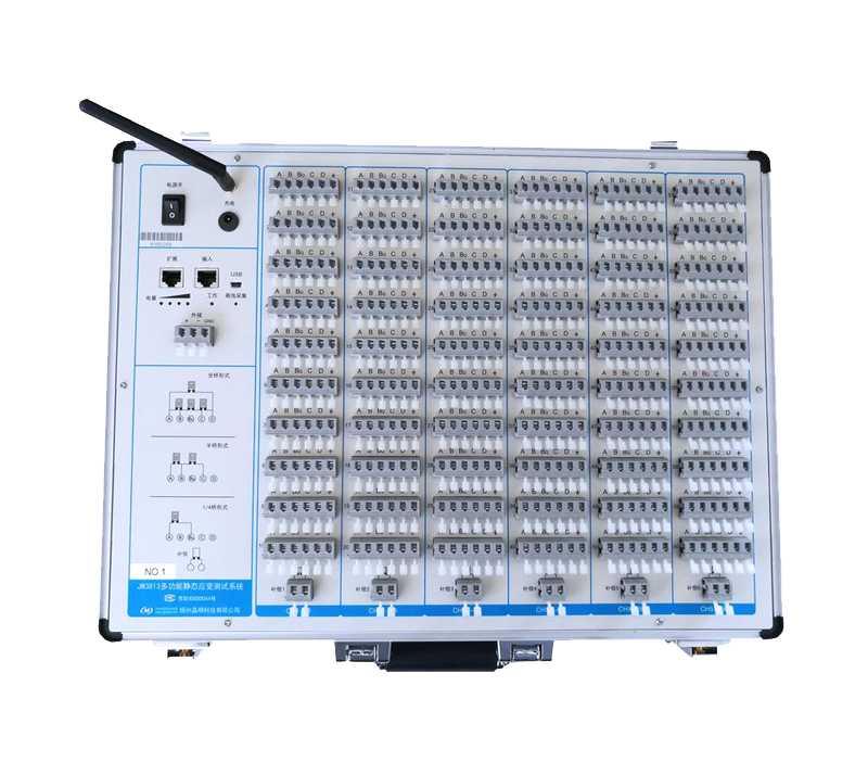 JM3813多功能靜態(tài)應(yīng)變測試系統(tǒng)是創(chuàng)新設(shè)計的第三代靜態(tài)應(yīng)變儀,不用連接線,不用短接片,真正地消除了熱電勢的影響,儀器自身不會產(chǎn)生漂移,系統(tǒng)絕 對真實反映應(yīng)變信號的實際變化;同時系統(tǒng)也具有諸多適應(yīng)現(xiàn)場測試(如測點利用率、供電方式、組網(wǎng)方式、測試方式、遠程遙測等)的人性化功能。我們的振弦式測試產(chǎn)品和電阻應(yīng)變式測試產(chǎn)品可以無縫集成于一個測試系統(tǒng)中。支持多種橋路形式及傳感器、支持多種通訊接口的萬 能應(yīng)變測試系統(tǒng)。