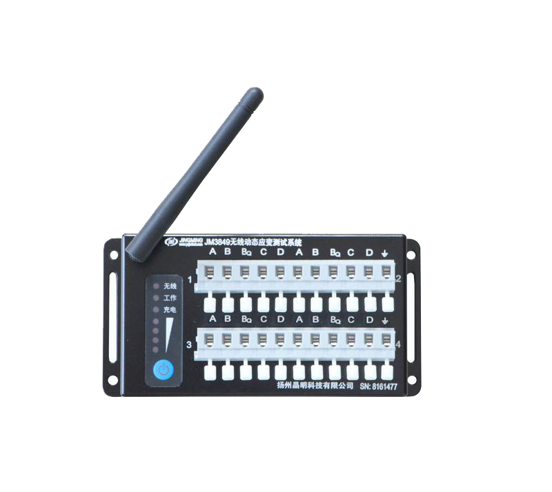 JM3849是由揚(yáng)州晶明科技有限公司創(chuàng)新設(shè)計(jì)的第三代應(yīng)變測(cè)試系統(tǒng),不用連接線,不用短接片,真正地消除了接觸電勢(shì)及熱電勢(shì)影響,支持多種橋路形式及傳感器。無(wú)線組網(wǎng):多臺(tái)設(shè)備根據(jù)zigbee通訊協(xié)議,由網(wǎng)關(guān)控制,可視距離通訊不低于500m。