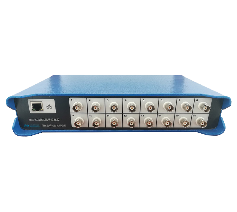 JM5937/JM5938是一款高性能數(shù)據(jù)采集分析的動(dòng)態(tài)信號(hào)測(cè)試分析系統(tǒng)。系統(tǒng)采用LAN接口和計(jì)算機(jī)進(jìn)行通訊,完成電壓/IEPE信號(hào)的調(diào)理和數(shù)據(jù)的采集。單臺(tái)設(shè)備支持16CH,系統(tǒng)多支持8臺(tái)設(shè)備同時(shí)工作,設(shè)備間通過(guò)級(jí)聯(lián)實(shí)現(xiàn)同步工作。每通道內(nèi)置獨(dú)立的24bit ADC,保證每通道高以100kHz的采樣率同步采樣,這一性能使系統(tǒng)既適用于一般的信號(hào)采集應(yīng)用,也適用于較高要求的如模態(tài)測(cè)試等試驗(yàn)場(chǎng)合。降低采樣率,可進(jìn)一步提升系統(tǒng)容量。